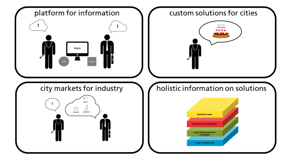 BABLE ist eine Fraunhofer Ausgründung, die im Rahmen der »Morgenstadt-Initiative« entstand und entwickelt wurde, um Innovationen mit sauberen Technologien mit der Nachfrage und den Bedürfnissen von Städten, Stadtplanern und -entwicklern zu verknüpfen. Die Plattform überwindet die Lücke zwischen Konzepten und Vergabeverfahren and hilft bestehende Produkte und Lösungen in den Entwicklungsprozess von nachhaltigen Städten zu integrieren.