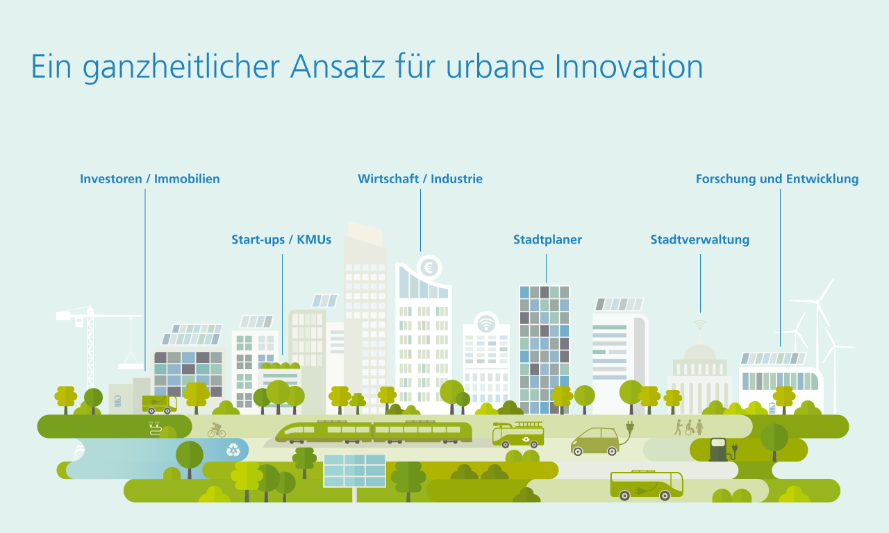 In acht Innovationsfeldern bündelt die Initiative das Know-how ihrer Partner und deckt damit das gesamte Spektrum komplexer Stadtsysteme ab.