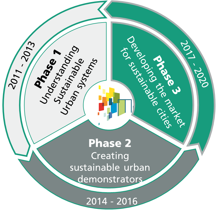 The first phase of m:ci took place in the period from June 2012 to October 2013. First, eight key sectors were identified for the future viability of cities: energy, mobility, ICT, buildings, production & logistics, security, governance and water infrastructure. Based on a global screening of best practice examples; successful innovations, technologies, business models and processes were identified. Out of the results, six cities, Freiburg, Copenhagen, New York, Berlin, Singapore and Tokyo, were identified as global pioneers in the area of sustainable urban development.